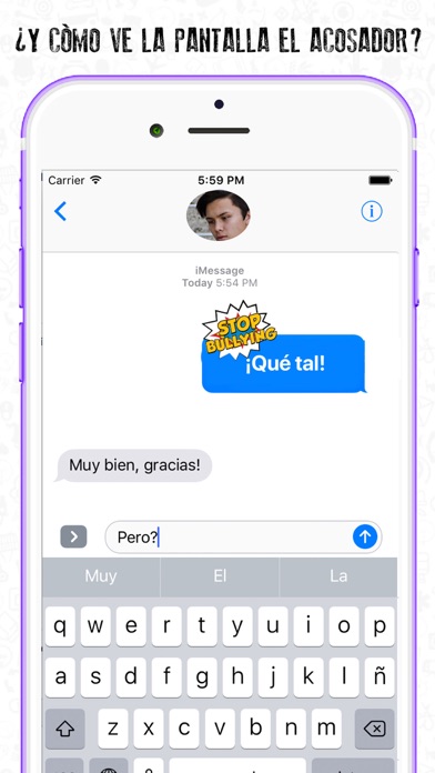 Rompe Bullying, convirtiendo el Bullying en conversación. El ciber bullying supone ya uno de cada cuatro casos de acoso escolar, dejando algún tipo de secuela psicológica en el 92% de las víctimas. El medio más utilizado para el acoso virtual son los mensajes de texto, continuos e incesantes sin ningún fin. La única y última defensa, el bloqueo del contacto. ¿Cómo podíamos darle la vuelta? Utilizando el nuevo sistema de Stickers de Apple, TokApp ha desarrollado unas pegatinas para sustituir los mensajes desagradables e impertinentes en conversaciones amables. CÓMO FUNCIONA. 1- El acosador recibe un mensaje. 2- Abre Rompe Stickers y selecciona una pegatina 3- La arrastra sobre el mensaje, cubriéndolo totalmente. 4- El mensaje original queda oculto tanto para el receptor como para el acosador. 5- La pegatina genera una nueva conversación diferente y lejana al acoso.