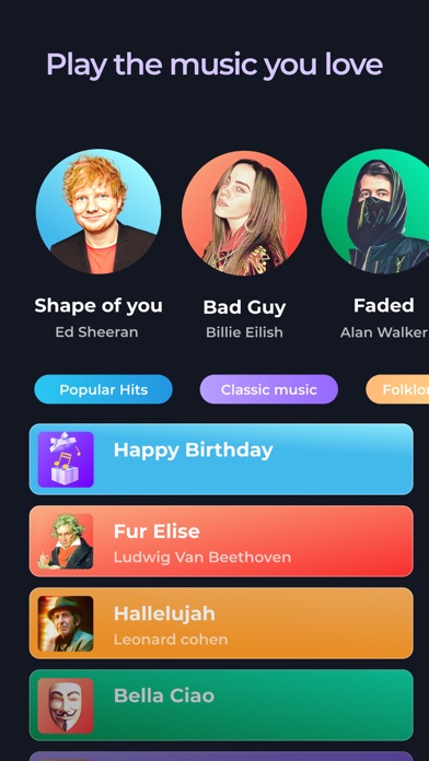 Play piano easily with fun. Without any experience, learn your favorite songs faster than ever! Choose a way to discover the piano universe which suits you the best. A new unique approach to learning piano: Skip theory and dive into practice. Learn by memory by watching & repeating piano songs. Train your musical hearing by tapping on the right notes. You will be surprised by your memory! Learn at your own pace, whenever and wherever you want. A rhythm game to play piano like a maestro: Play famous hits and classic songs easily thanks to an ultra-realistic piano with HD sound! Challenge yourself and increase your skills with hundreds of levels created by professional musicians. Improve your sense of rhythm and try to get all notes perfectly. Finish all the levels and be part of an entire orchestra thanks to an incredible concert mode. Play your favorite songs: Our catalog is updated with new content every week! Worldwide popular hits like Shape of You By Ed Sheeran, Chandelier by Sia, Faded by Alan Walkerโฆ All-time classic songs like Mozart, Beethoven, Bachโฆ Unleash your creativity: Play piano freely on a keyboard simulator, where you can play any song and chord. Our digital Piano app lets you choose sounds from a number of musical instruments: from a piano keyboard and grand piano to the harpsichord and organ. Main features: - 2 gameplay: Learn mode and game mode - Ultra-realistic piano keyboard - Levels to improve your rhythm skills - An immersive experience in an orchestra by playing piano in a concert mode - Various music songs: Famous songs, Most classics tracks, Folklore songs - A catalog updated every week - 5 different keyboards and musical instruments: Grand Piano, Vintage Piano, Electric Piano, Church Organ, Harpsichord - Metronome & Time signature Premium benefits: The premium subscription allows you to access all the present and upcoming Premium features such as the different piano types. It gives you access to all the premium and regularly updated piano songs. You will also have an ad-free experience. Have any questions or suggestions regarding the app? Our support team is ready to help at [[email protected]](mailto:[email protected]). Privacy Policy & Terms of Uses: https://musicworldmedia.com/products/piano-keyboard/tos