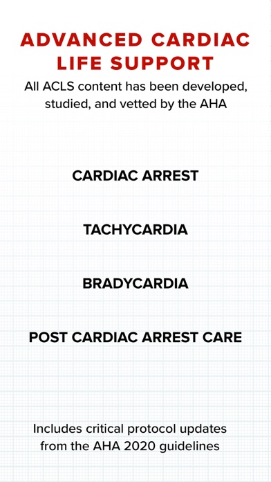 The AHA ACLS app is the American Heart Association's (AHA) officially endorsed digital health solution to assist clinicians in running codes and delivering bedside ACLS care with actual patients. The app was developed by Harvard-trained physicians, in collaboration with the AHA, to help fellow physicians, nurses, physician assistants, nurse practitioners, and emergency medical technicians (EMT) deliver the highest level of advanced cardiac life support (ACLS) at the point-of-care. It began as a project to assist clinicians within Massachusetts General Hospital (MGH), a Harvard Medical School teaching hospital—and then expanded to have a global scope after significant positive impact was demonstrated. Importantly, real-time feedback from our clinician users continuously drives improvements in app design, features, and function so that you will have the best experience providing life-saving care at the bedside. The AHA ACLS app is the only one to have all content vetted by both the AHA science team and practicing Harvard-affiliated physicians. It also features the latest 2020 release of AHA recommendations for ACLS. We owe it to our patients to use the best digital health tools to give them the highest chance of surviving acute life-threatening cardiac illnesses. To this end, we have developed a low cost, intuitive, and rigorously vetted mobile app to assist clinicians— including in all stages of training—and enhance ACLS care at the bedside. Features: - Intuitive design to rapidly access 4 ACLS algorithms (i.e. cardiac arrest, tachycardia with pulse, bradycardia with pulse, and post cardiac arrest care) - Includes all ACLS content including drug therapy and dosing, reversible causes, etc. - Easy-to-read timers and ability to log rounds of CPR, epinephrine, and defibrillations - Button within cardiac arrest algorithm that allows for rapid transition to post cardiac arrest care pathway once patient achieves ROSC - All content rigorously vetted by AHA science team and practicing Harvard-affiliated physicians - Regularly updated with the most up-to-date ACLS content We continue to iterate based on real-time clinician feedback, so that you will have the best experience providing life-saving care at the bedside. AHA ACLS offers an auto-renewing annual subscription at $2.99/year with a 3-day free trial. You will have unlimited access to all content while you maintain an active subscription. Payment will be charged to the credit card connected to your Apple ID Account when you confirm the initial subscription purchase. Subscriptions automatically renew unless auto-renew is turned off at least 24-hours before the end of the current subscription period. Your account will be charged for renewal within 24-hours prior to the end of the current period. You may manage your subscription and auto-renewal may be turned off by going to your Account Settings after the purchase. Any unused portion of the free trial period, if offered, will be forfeited when you purchase a subscription. You can read more about our terms and conditions in the app. Icons by Icons8