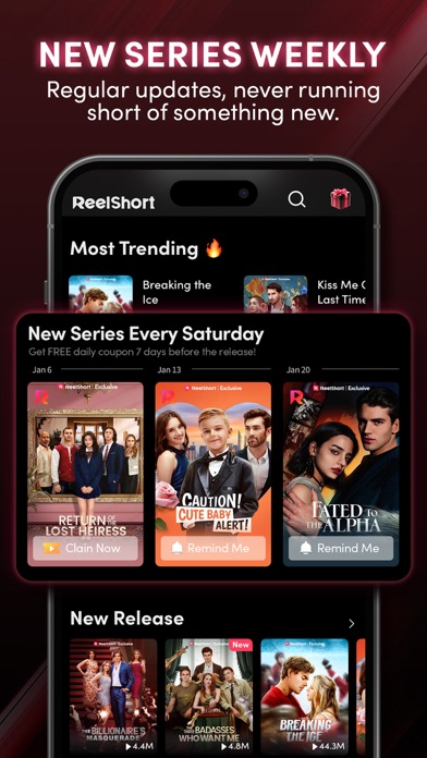 Tired of never finishing a movie or paying for unused subscriptions? Watch ReelShort — Every Second is Drama Say hello to ReelShort, a next-gen HD streaming short movie platform offering exclusive vertical TV mini series. Recognized by Times100 for our movie reels innovation in the entertainment industry, we're changing the way you watch movies with our one-minute short movie episodes that you can enjoy anytime, anywhere, all from the convenience of your phone with the ReelShort App. Choose from our TV mini series library packed with endless addictive movie shorts added daily, from romantic encounters with billionaires and heart-wrenching tragedies to epic comeback stories and more—you won't ever be short on short movie entertainment! Featured Shows: [Don't Miss Me When I'm Gone] After losing my parents, I move in with my godmother, Aunt Sandra. I live under her roof with her two sons-the Miller brothers-surrounded by love and care. I think I’ll end up with one of them. But everything changes when the maid’s daughter, Lola, moves in. The Miller brother I love most breaks my heart into pieces. After I leave, they lose their minds trying to find me. [Move Aside! I'm the Final Boss] Kingsley is the secret King of King's Corps and the richest man on Earth, but when he returns from the battlefield, his childhood sweetheart brutally dumps him, thinking he's a clown. How will the King of all men make her regret it? Here's why you'll love ReelShort: Bite-sized original movie shorts designed for on-the-go viewing •Exclusive short movies with juicy vertical content that will keep you hooked •New TV mini series added daily, with hundreds of new episodes each month •Hollywood-quality entertainment, crafted for the big screen delivered to your small screen •The first ever interactive live action short movies, where you decide what happens next Experience the future of short movie entertainment, one minute at a time — download ReelShort now! "Crazy Maple Studio is quietly changing the streaming game with its ReelShort app." - Time100 "The biggest player in this new genre is ReelShort." - New York Times "Every minute has a hook that keeps you watching." - Wall Street Journal "ReelShort, which has dozens of shows — similarly light on character development and packed with curveballs — made for binge-watching in minutes." - Washington Post Follow Us on Social Media Instagram: https://www.instagram.com/reelshortapp Facebook: https://www.facebook.com/reelshortapp YouTube: https://youtube.com/@reelshortapp TikTok: https://www.tiktok.com/@reelshortapp ReelShort's Website: https://www.reelshort.com Notice: If you subscribe through Apple, the payment will be deducted from your App Store account upon purchase confirmation. Subscription privileges: While your subscription is active, you can watch all tv mini series for free. Your subscription will take effect within 24 hours after purchase, depending on the status of your order in the Apple Store. The subscription is valid for 7 days. Auto-Renewal: Your subscription will automatically renew. You will be charged within 24 hours before the start of each subscription period until you cancel your subscription. Cancellation: On iOS devices, you can cancel your subscription at least 24 hours before the next renewal date by going to Settings > iTunes & App Store > Apple ID > View Apple ID > Subscriptions > ReelShort. The subscription is billed weekly. The actual price may vary by region. Terms of Service: https://crazymaplestudios.com/v/user-agreement Privacy Policy: https://crazymaplestudios.com/v/privacy-agreement