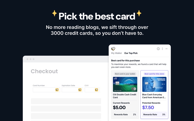 Transform your credit card experience with Kudos, the #1 app to multiply your rewards. Kudos is a free AI-powered wallet that revolutionizes the way you use credit cards for shopping. With Kudos, unlock the full potential of your credit cards and ensure you're always making the most informed choice with every transaction. MAXIMIZE YOUR REWARDS - Kudos doubles your credit card rewards on over 15,000+ sites. - Earn points even if your card doesn't earn rewards of its own. - Get the best returns on everyday purchases from groceries to shoes. ALWAYS PAY WITH THE BEST CARD - No more guesswork on which credit card to use. - Kudos automatically recommends the best card for each purchase. - Ensure you always get the highest cash back, points, or miles. AUTOFILL YOUR CARD INFO WITH ONE CLICK - Securely store your credit card information and enjoy seamless checkout. - One click and Kudos completes your card information, including CCV. - Shopping online has never been faster or safer. DISCOVER YOUR NEXT CARD - Access elevated credit card offers with CardMatchâ„¢. - Explore new cards that fit your lifestyle, spending, and rewards preferences. - Perfect your "Dream Wallet" to optimize every transaction from travel to tech. JOIN 200,000+ SHOPPERS WHO TRUST KUDOS TO EARN MORE - Earn an average of $750 a year. - Kudos members earned over $100M in credit card rewards in 2023. - Score exclusive "Flash Boost" offers and discounts. Ready to maximize your rewards? Download Kudos now and begin your journey to smarter spending and more rewarding shopping experiences. It's time to get the most out of your credit cards with Kudos.