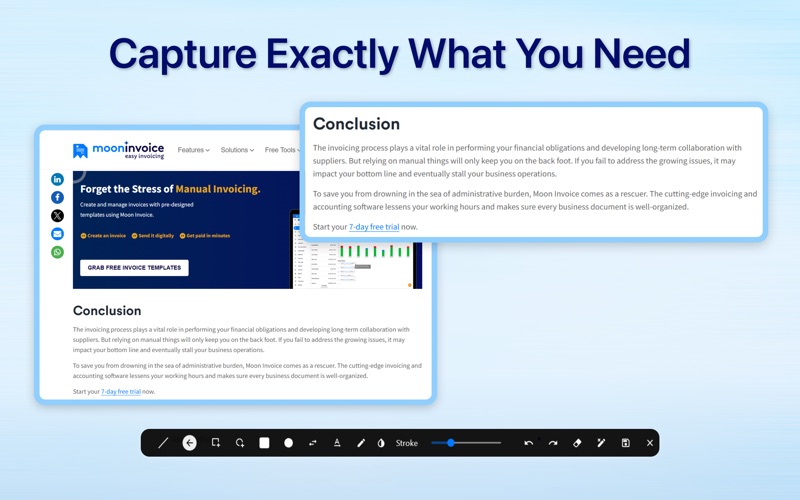 The Ultimate Screenshot & Annotation Tool for Mac & Windows Say hello to your new favorite screen capture tool — built for speed, flexibility, and total control. Whether you’re snapping a full screen, selecting a region, or editing on the fly, this app makes capturing and sharing screenshots effortless. Key Features: Screen Capture Made Easy • Full screen, region, and instant edit captures • Keyboard shortcuts for quick actions (fully customizable) Image Annotation & Editing • Draw with lines, arrows, rectangles, circles, and double arrows • Freehand pencil tool, text tool, and color picker • Adjust stroke width, erase, undo/redo, or clear all in one click Clipboard Integration • Monitor clipboard for images and auto-upload with short link generation Save or Upload – You Choose • Save images locally to your selected folder • Upload to the cloud automatically or manually Works Across Platforms • Fully compatible with both macOS and Windows Whether you're a content creator, developer, teacher, or just someone who shares a lot of screenshots. This app makes your workflow faster and smarter. Try it out and see how easy capturing and sharing can be.